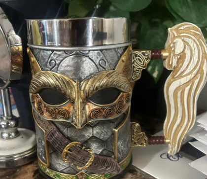 Crafted with a solid stainless steel core and reinforced resin exterior, this mug is made to endure daily use. Strong, well-forged, and balanced in hand — it’s not just for display, it’s made to be used for years without losing its character.